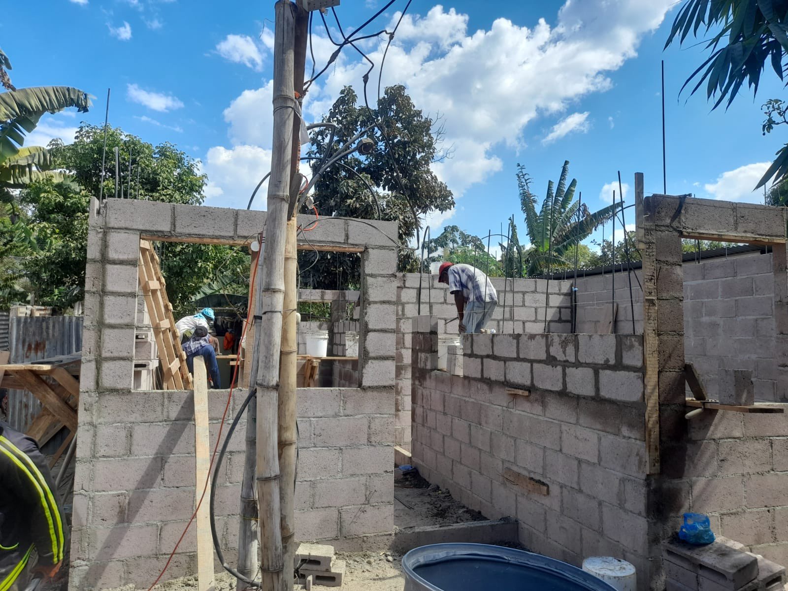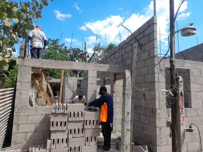 “Las viviendas presentan avances variados, desde el 15% hasta el 65% del proceso constructivo, realizando labores de: Diseño de trazo, compactaciones y pegado de bloque”, expresó en su cuenta de Twitter.